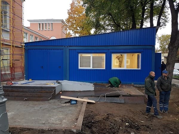 Модульные здания контрольно-пропускных пунктов на объекте здравоохранения в Москве. Модульное здание КПП — проходная на объект здравоохранения.