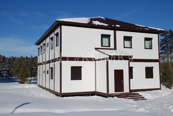 Модульное здание администрации из 26 блок-контейнеров "Каскад" в 2 этажа. Внешняя отделка — сайдинг. Выполнены работы по устройству пожарной и охранной сигнализаций.